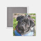 Schwarzer Mops Welpe mit einer Jacke Magnet