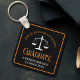 Dieser moderne Abschluss Schlüsselanhänger der Zollschule in Schwarz und Orange zeigt klassische Typografie für den 2024-Grad-Abschluss. Stellen Sie sich mit Ihrem geschlossen Jahr unter den weißen Maßstäben der Gerechtigkeit für einen großen personalisierten Anwalt oder Anwalt Geschenk.