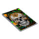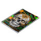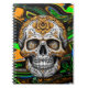 Schwarzer, kalk-grüner, orangefarbener Zuckerschädel mit fließender Kunst abstrakte Kunst.