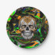 Schwarzer, kalk-grüner, orangefarbener Zuckerschädel mit fließender Kunst abstrakte Kunst.