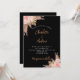 Für eine moderne Hochzeit im bohischen Stil. Ein stilvoller schwarzer Hintergrund. Die Einrichtung ist mit Rose-Gold und rosa Blumen, Rose und Pampas-Gras dekoriert. Personalisieren und hinzufügen von Namen und Details.
