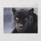 Tierkarte mit einem imposanten schwarzen Panther. Ein schwarzer Panther ist typischerweise eine melanistische Farbvariante jeder Panthera-Spezies. Schwarze Panther in Asien und Afrika sind Leoparden (Panthera pardus).