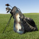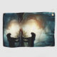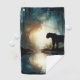Schwarzer Panther spiegelt sich im Wasserbecken im Golfhandtuch