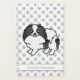 Desteis originelle Cartoon-Illustration eines niedlichen Schwarz-Weiß-Fell-Spitz züchten Hund. Es gibt auch einen personalisierbaren Textbereich für einen Namen oder Titel. Der Hintergrund hat ein Muster von Hundepfoten.