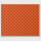 Ein Umhüllungspapier, das mit einem schwarzen Polka-Punktmuster mit einem großen Abstand zwischen den Punkten auf einem hellen orangefarbenen Hintergrund gebaut wurde. Passen Sie den orangefarbenen Hintergrund einfach an.