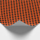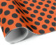 Ein Umhüllungspapier, das mit einem schwarzen Polka-Punktmuster auf einem hellen, orangefarbenen Hintergrund aufgebaut ist. Passen Sie den orangefarbenen Hintergrund einfach an.