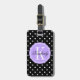 Schwarzer Polka-Dot mit Lilac Monogramm Gepäckanhänger