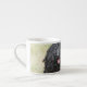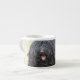 Geschnürter schwarzer puli Hund mit einer kleinen rosa Zunge.