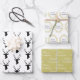Wrapping Paper Sheet Set von 3. Die Designs verfügen über eine schwarze Silhouette eines Rentierkopfes, Vintagen goldfarbenen verzierten Rahmen mit den Worten "Frohe Weihnachten" im Inneren, die Worte "Frohe Weihnachten" gefliest in einem weißen Serif-Schriftart auf einem goldenen Hintergrund. Die Nachricht kann personalisiert sein.