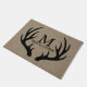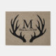 Shabby Chic und themed Fußmatte der perfekten Rotwild für eine outdoorsy/Jagdfamilie! Klare schwarze Rotwildgeweih-Silhouetten umgeben Ihren personalisierten Familienmonogrammbrief und vollen Namen auf einer Imitatleinwandbeschaffenheit! Diese Fußmatte würde auch ein großes Geschenk für eben weds oder neue Zuhauseinhaber machen!
