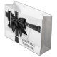 Eine schöne Abbildung eines großen schwarzen Satin-Bogen-Set auf einem schwarzen Band auf weißem Hintergrund hat schwarze Vorlagen für Ihre personalisierte Formulierung. Sie sind ideal für alle geschäftlichen und privaten Feiern, Geburtstagsgeschenke oder für jedes Schwarz-Weiß-Event.
