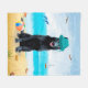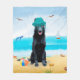 Der schwarze deutsche Schäferhund, der am Strand sitzt, ist eine Geschenkidee für jemanden, der diese Hundezüchtung Liebe hat.