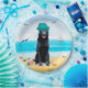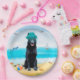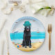Der schwarze deutsche Schäferhund, der am Strand sitzt, ist eine Geschenkidee für jemanden, der diese Hundezüchtung Liebe hat.