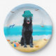 Schwarzer Schäferhund am Strand Pappteller