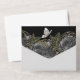 Ein wunderschönes, luxuriöses und gläsernes Ganzes mit Perlschmetterlingsmutter, die auf einem schwarzen Hintergrund mit kohleschwarzen Rose, umgeben von Imitaten, silberne Sprigs, schmiedet. Die Außenseite ist hellpastellgrau und die Aufzugsklappe ist schwarz mit zartem Blumendesign. Das untere Drittel verfügt über eine Antwortkarte mit personalisierter uAwg-Adresse und Menüoptionen, die Ihre Gäste abschließen können. Sie sind ideal für einen Frühling. Sommer; Herbst- oder Winterhochzeit; für eine schwarze Themenparty oder für eine luxuriöse und elegante Hochzeitsszenario.