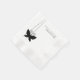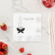 Die schwarze Butterfly-Papierserviette ist mit einem eleganten schwarzen Schmetterling mit ausgebreiteten Flügeln und einem Paar geschmeidiger Antennen auf weißem Hintergrund ausgestattet. © Morning 6