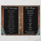 Hochzeitsprogramm. Rustikales braunes Holz, schneebedeckter Hintergrund und schneebedeckter Wald. Gemütlicher Vintager Landstil. In unserem Shop sind weitere Artikel in diesem Stil erhältlich. Sie können das Design weiter bearbeiten, Farben, Schriftart ändern und zusätzlichen Text hinzufügen, indem Sie auf den Link "Weiter anpassen" klicken.