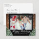 Happy Holidays grüßen Postkarte mit Ihrem Foto. Rustikales braunes Holz, schneebedeckter Hintergrund und schneebedeckter Wald. Gemütlicher Vintager Landstil. In unserem Shop sind weitere Artikel in diesem Stil erhältlich. Sie können das Design weiter bearbeiten, Farben, Schriftart ändern und zusätzlichen Text hinzufügen, indem Sie auf den Link "Weiter anpassen" klicken.