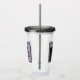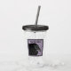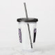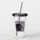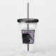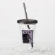 Dieser Acryl-Drink-Wäscher mit Stroh und Deckel hat eine Abbildung des Kopfes und des Flügels einer schwarzen Krähe auf einem lila Hintergrund mit einem verzierten schwarzen Rahmen.