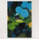 Digital illustration depicts a night forest and a quiet lake. Several black swans with red beaks float peacefully under the blossoming willow on the water surface. Wir haben die Shore of the lake, you can see a small house in a grove of trees. The whole illustration is filled with a magical and mysterious atmosphere