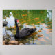 Schwarzer Schwan in einem Goldfischteich Poster