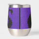 Das Bild, das auf einem Getränk oder Wasserflasche gedruckt ist, stammt aus einem Foto eines originalen, gekreuzten Schaffens, handgefertigt und Copyright © des publizierten Designers Delores Chamblin. Das Bild der einzigartigen handgefertigten Kreation mit schwarzer Schwan-Silhouette wird auf dem thermischen Trinkbehälter für kalte und warme Getränke wiedergegeben.