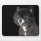 Schwarzer Spitz mit Blick auf das links Mousepad