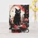 Aquarellfarbenes Schwarz-Katzenportrait Splash-Kunst mit roten Blume auf einem roten und schwarzen Hintergrund. Blank Grußkarte zum Geburtstag, Jubiläum, neues Baby, danke, Beileid, etc.