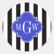 Schwarzer Streifen Kobalt Blue Quatrefolie 3 Monog Runder Aufkleber