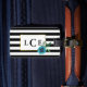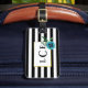 Mit diesem einzigartigen, auffälligen Anhänger verlieren Sie nie wieder den Überblick über Ihre Tasche! Modernes Blumendesign mit schwarz-weißen Streifen mit blauer Aquarellpansie Blume und Imitat goldenen Akzenten. Anpassen mit einem Monogramm, Namen oder Text Ihrer Wahl. Zurück ist mit Ihren Kontaktinformationen vollständig anpassbar.