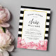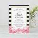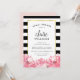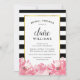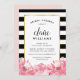 Wählen Sie diese schöne Braudusche für die moderne klassische Braut! Der Hintergrund ist schwarz-weiß gestreift, die Imitate haben einen goldenen Rahmen, und die Blume sind in Rosa eingefärbt. Die Einladungen kehren zu massivem Rosa um.