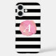 Das Chic iPhone Gehäuse weist einen schwarz-weißen Streifen-Hintergrund mit einem rosa Wasserfarbenblock auf, der ein Initial- oder Monogramm enthält. Passen Sie Ihre Initialisierung für eine Telefonzelle an, die Ihnen einzigartig ist!