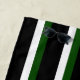 Lebhaftes schwarzes, tiefgrünes und weißes gestreiftes Strandtuch.