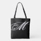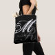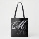 Eine stilvolle schwarze Tasche mit Ihrem Namen und Initialen, die im Stil eines Schriftartes mit Monogramm ist