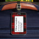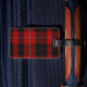 Stilvoller Gepäckumbau getan im traditionellen karierten Muster schwarzen und roten Cunningham Tartan. Ein weißer Textbereich, auf der Front, hat den schwarzen Text, der bereit ist, mit Ihren Informationen zu personifizieren. Die perfekte Weise, Ihr Gepäck zu beschmutzen und macht eine große Geschenkidee.