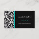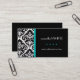 Schwarzer u. weißer Damast, Aqua aquamarin Visitenkarte