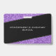 Eleganter, gürtelschwarzer und lila Glitzer Lehrersaal vorbeigeht. Horizontales Layout. Personalisieren Sie es, indem Sie Ihren Namen, Ihre Klassenzimmer-Nummer und Ihren Schulnamen hinzufügen. Sehr feminin, mädchenhaft, glänzend Design. Ideal für Frauen, die Grund- oder Mittelschullehrer sind.