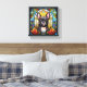 Schwarz-Weiß Bulldogge künstlerisch in einem Imitat Buntglasfenster Modus Leinwand gedruckt.