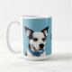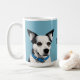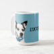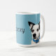 Schwarzer und weißer Hund mit blauem Collar Kaffeetasse