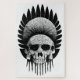 Schädel mit Indianerstäbchen. Schwarz-Weiß-Tribal-Schädel Dunkle Kunst.