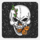 Schwarzer und weißer Schädel mit Monarch Butterfly Quadratischer Aufkleber