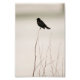 Die Kunst zeigt einen Single schattigen schwarzen Vogel auf einem großen, dünnen Winter karren Zweig in launenhaftem grauem Nebel. Original Kunst von Featherfall Studio.