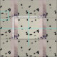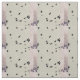 Schwarze Vögel auf beige Hintergrund mit Lachsrosa-Baumbild, gemustertes Blockieren.