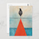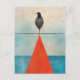 Die KI erzeugte minimalistische Kunst eines schwarzen Vogels, der auf einer geometrischen Kunst des roten Dreiecks steht