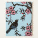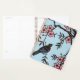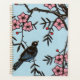 Dieser Planer hat einen schwarzen Vogel, der in einem Kirschbaum sitzt, mit hübsch rosa blühenden Blume und kleinen roten Beeren auf hellblauem Hintergrund.
