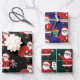 Schwarzer Weihnachtsmann mit Schneeflocken und Ste Geschenkpapier Set