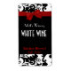 Elegante Zuhause machte Weinetiketten bereit für Sie, um mit Ihren eigenen Informationen zu personalisieren. Grafisches Kunstwerk eines schwarzen Labels, mit einem schwarz-weißen Damast-Design oben und unten und einem großen roten Band und Bogen oben. Ideal für Zuhause-Weine. Passen Sie an, ob Sie zum Ändern der Textfarbe oder des Schriftartes gewollt haben.