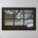 Schwarzer WIndow Rahmen Ominous White Tree Blossom Poster