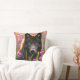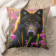 Schwarzer Wolf in rosa Blume Kissen