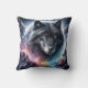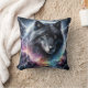 Eine atemberaubende Darstellung eines schwarzen Wolfs, der in einem lebendigen Himmel auftaucht, umgeben von dramatischen Blitzen und farbenfrohen kosmischen Wolken.